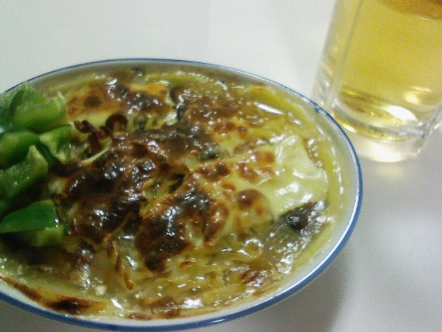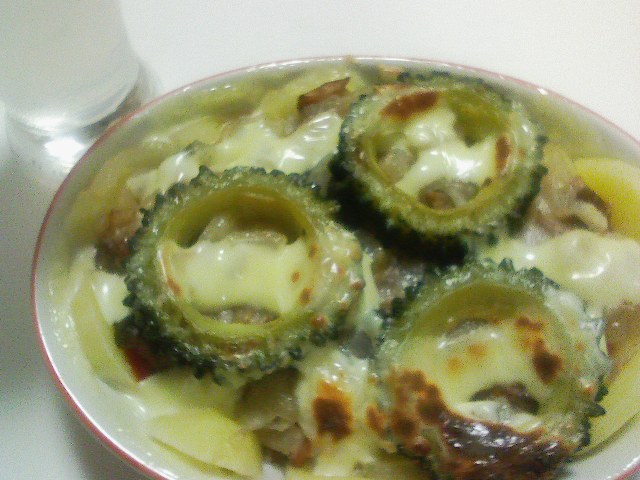 さらに温めた軟骨煮とゴーヤ、チーズをのせる。
